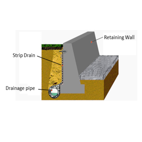 Sunfeel’s Strip drain is a filtered, prefabricated subsoil drainage system widely used around the world. It consists of a plastic core overwrapped with a nonwoven filter fabric (geotextile). Strip drain prevents soil intrusion into the flow channel while keeping water to freely enter to the drain core.