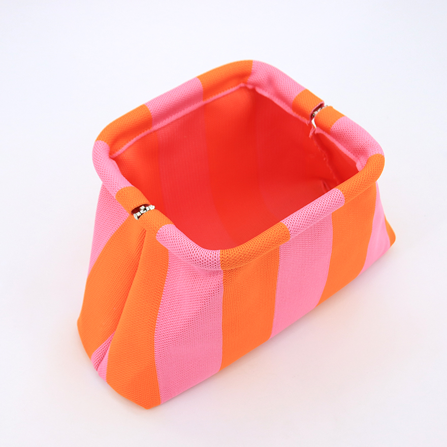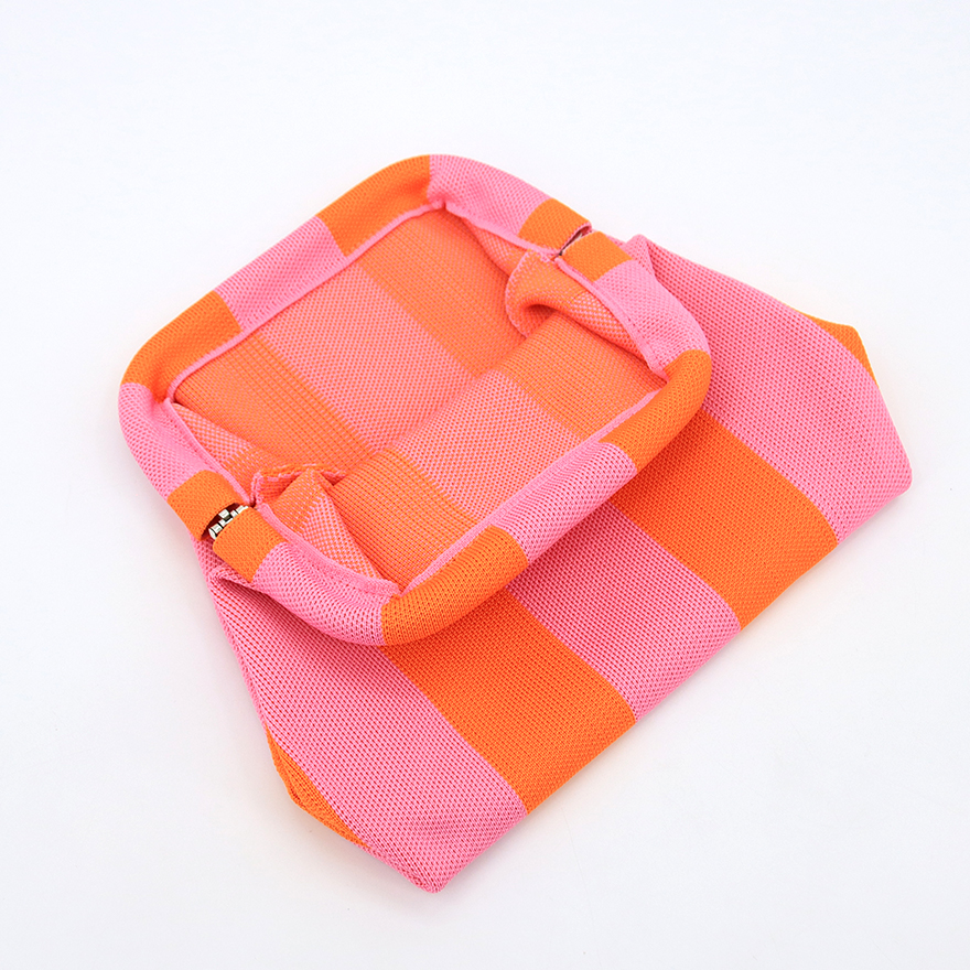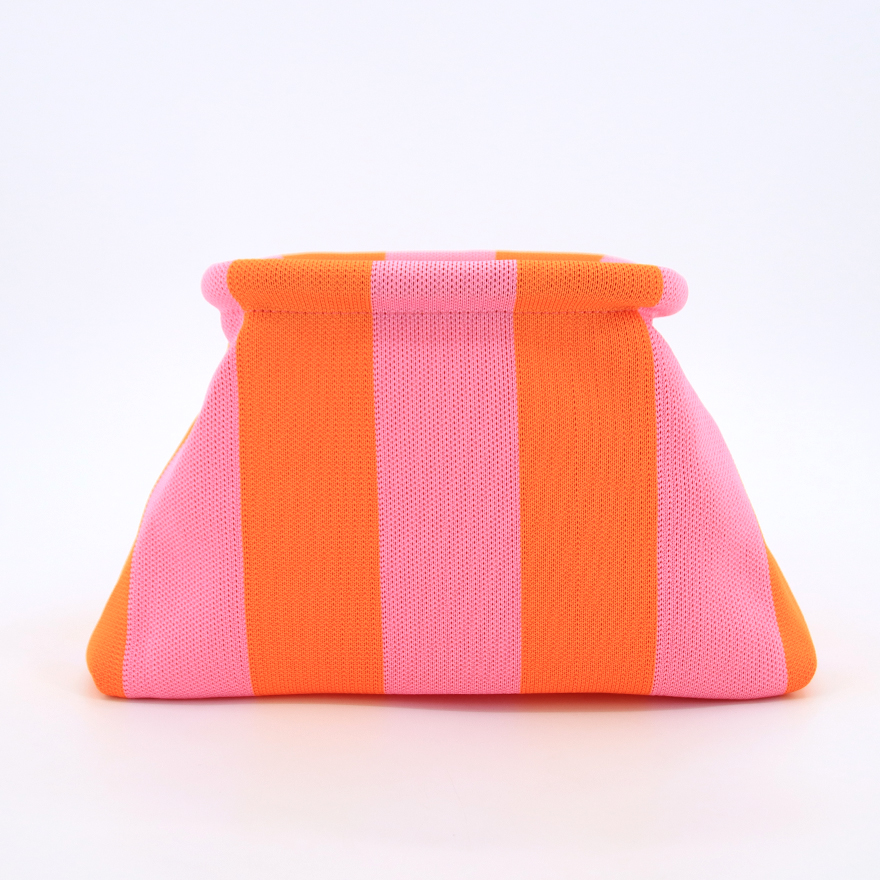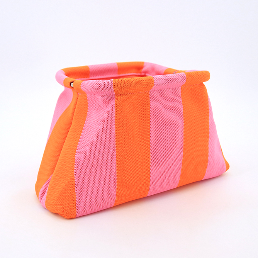 Fashionable knitted clutch bag designed for lifestyle brands targeting fashion-conscious female travelers.