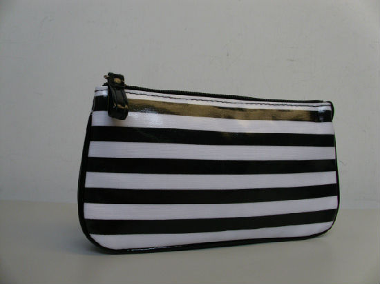 Striped printed canvas with PVC coating small cosmetic bag.