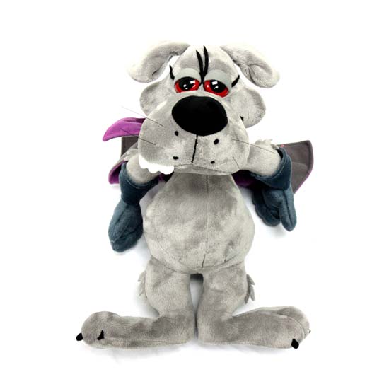 This stuffed animal comes with a special type of costume with gloves. The gray stuffed animal is soft and comfortable to hold. The large feet allow the toy to stand steadily.