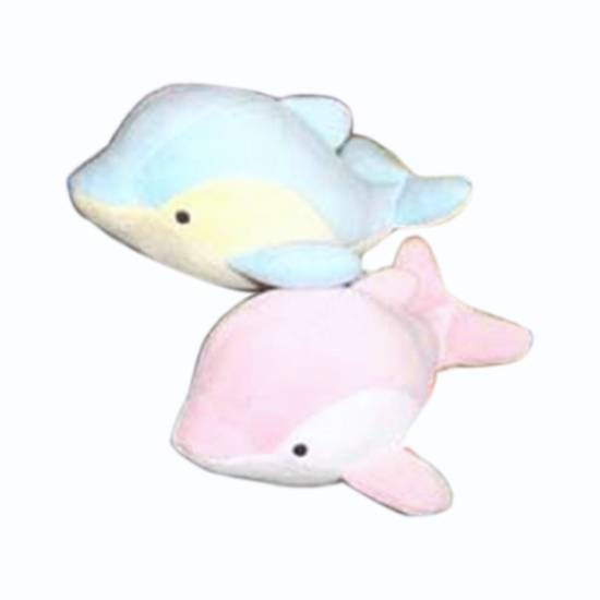 The stuffed toy dolphin touts a harmonious color, well suiting to the friendly nature of the real dolphins. The adorable dolphin with an innocent face craves you for snuggle it with love and care. This stuffed dolphin is sure to be your little kid's new best friend.