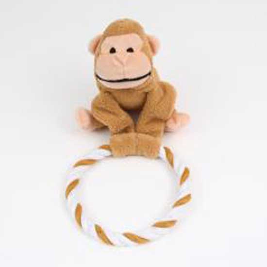 This stuffed towel hanger comes with a stuffed monkey. The polyester rope in brown and white covers the hanger frame perfectly. This hanger is suitable for families with children.