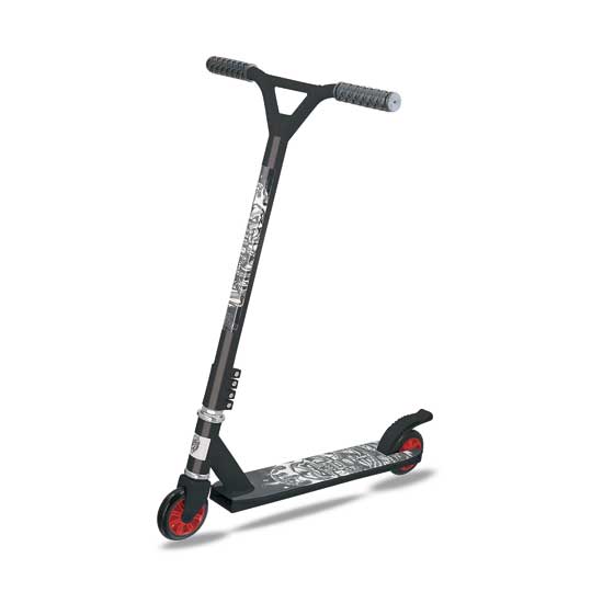 This stunt scooter features a welded aluminum frame with sturdy wheels and ABEC-7 bearings. This fantastic stunt scooter allows you to show off your moves in style. The stylish black scooter is designed with eye-catching graphics on the head tube and deck.