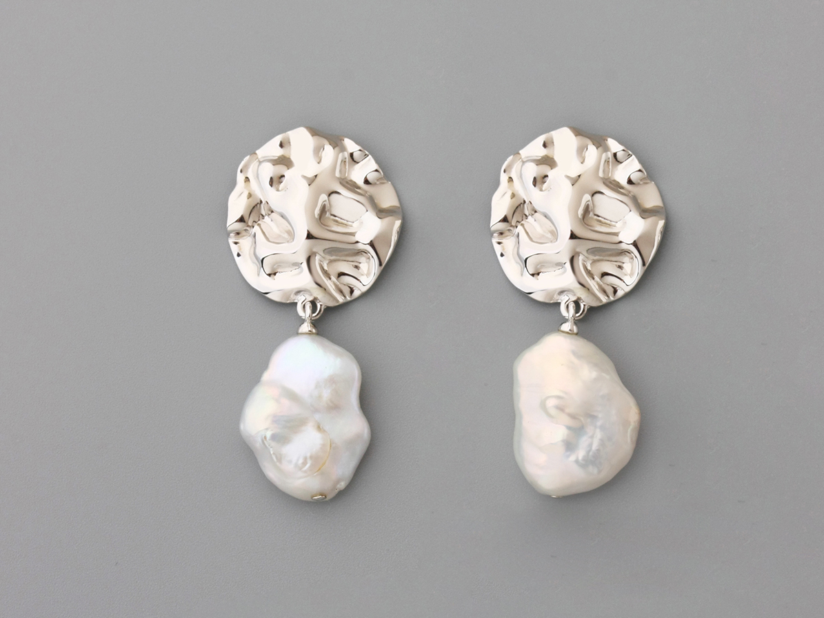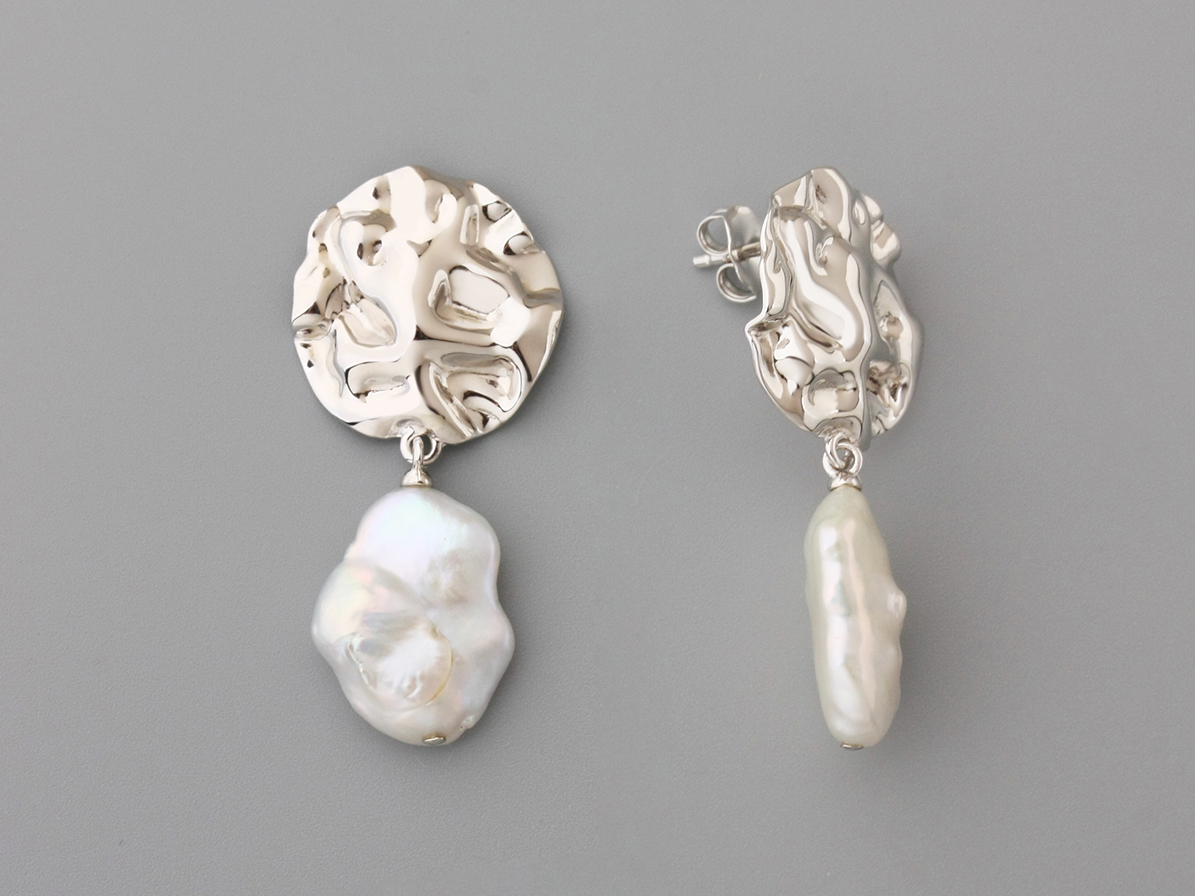 Sterling Silver Earrings With 12-13mm Keshi Freshwater Pearl, Rhodium Plated