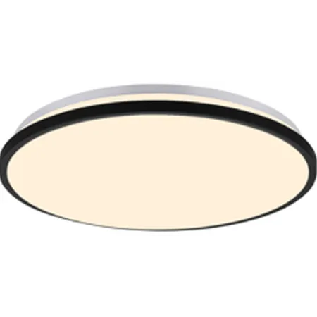 This is a round ceiling light. The main body in gray - white is paired with a black frame, and the inner lighting surface is off - white. With a simple design, it emits soft and warm light.