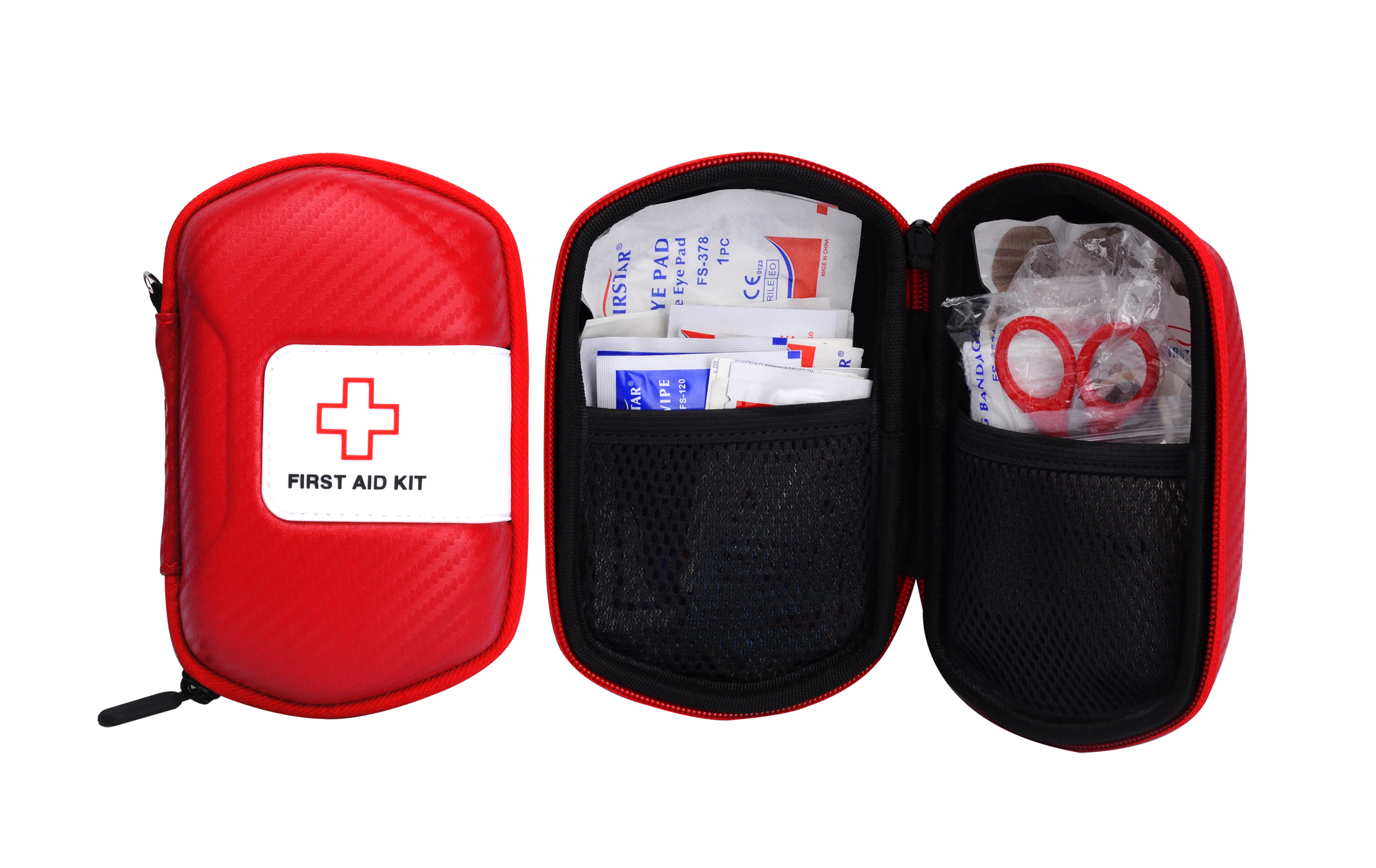 Ths portable first aid kit made of high quality EVA material, with stylish design and good shapes, contains medical items that you definitely want to have when an emergency occurs.