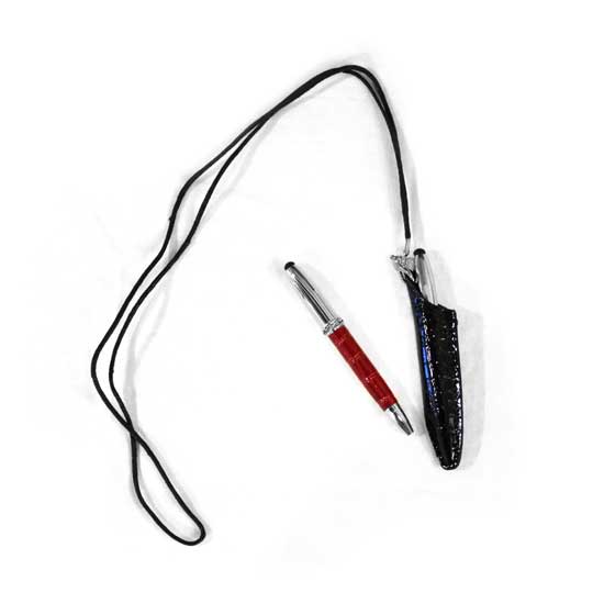 This deluxe stylus pen features a golden-hued barrel and tip, and a leather tube. With a soft and nimble tip, this smart stylus pen works seamlessly with your touch screen devices. A leather cover is also available to offer added protection to the pen.