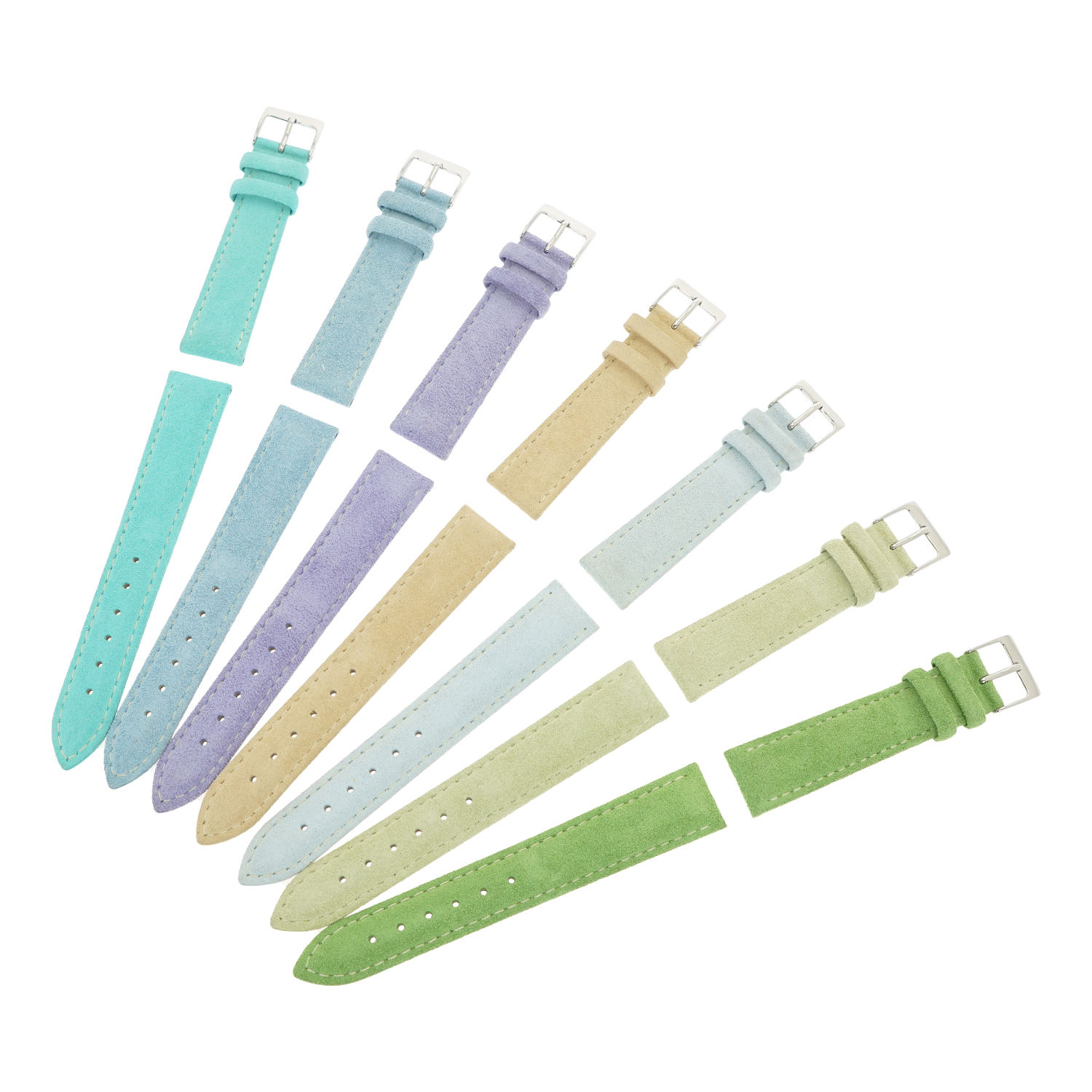Crafted from quality suede leather, this sturdy watch strap is pliable and smooth appearance. It is stitched with stitching, adding aesthetic to this strap. Equipped with a stainless steel buckle and leather keepers, this strap holds your watch firmly and can be used for many years.