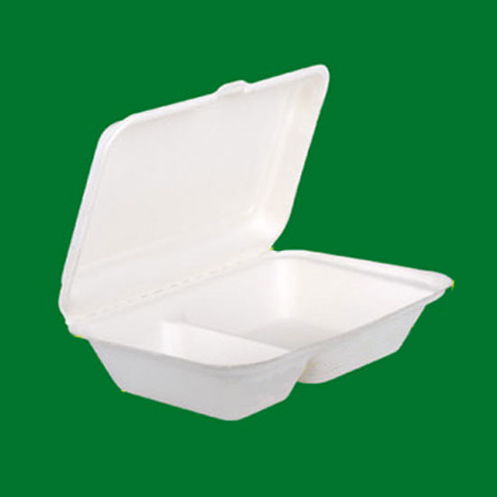 This is a 100% biodegradable sugarcane box with a stylish white design. It is finely made for safety and reliability. This high-quality sugarcane tableware is a great choice for restaurants.
