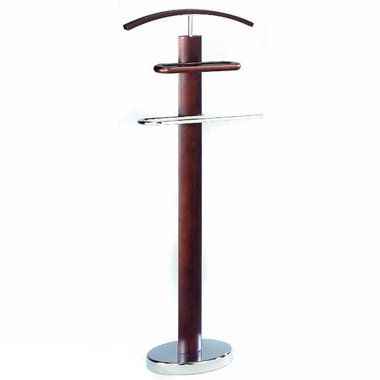 As shown is a suit stand which can keep one's suit stay straight and neat effectively. Made of quality wood and metal, this suit stand is known for its durability and quality. The suit stand is best for home or office use.