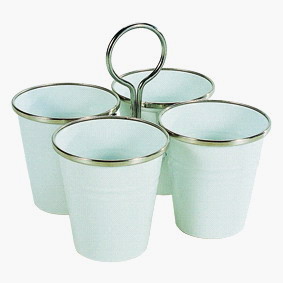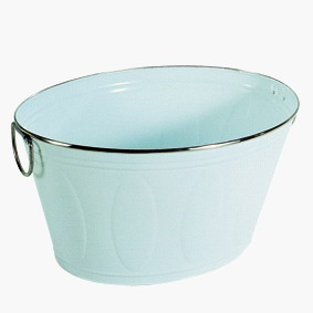 Keep your champagne and other drinks cold with this galvanized metal made ice bucket with a stainless steel rim. Every kitchen needs a ice bucket like that with two side rings.