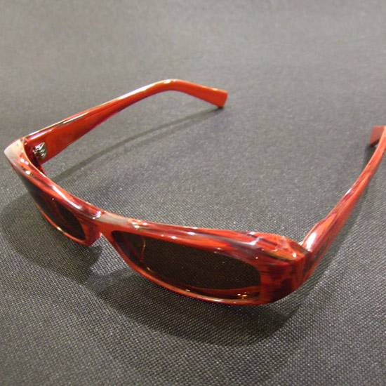This pair of sunglasses has red frame and temple. The frame and temples have wood patterned design. It is made of high quality material.