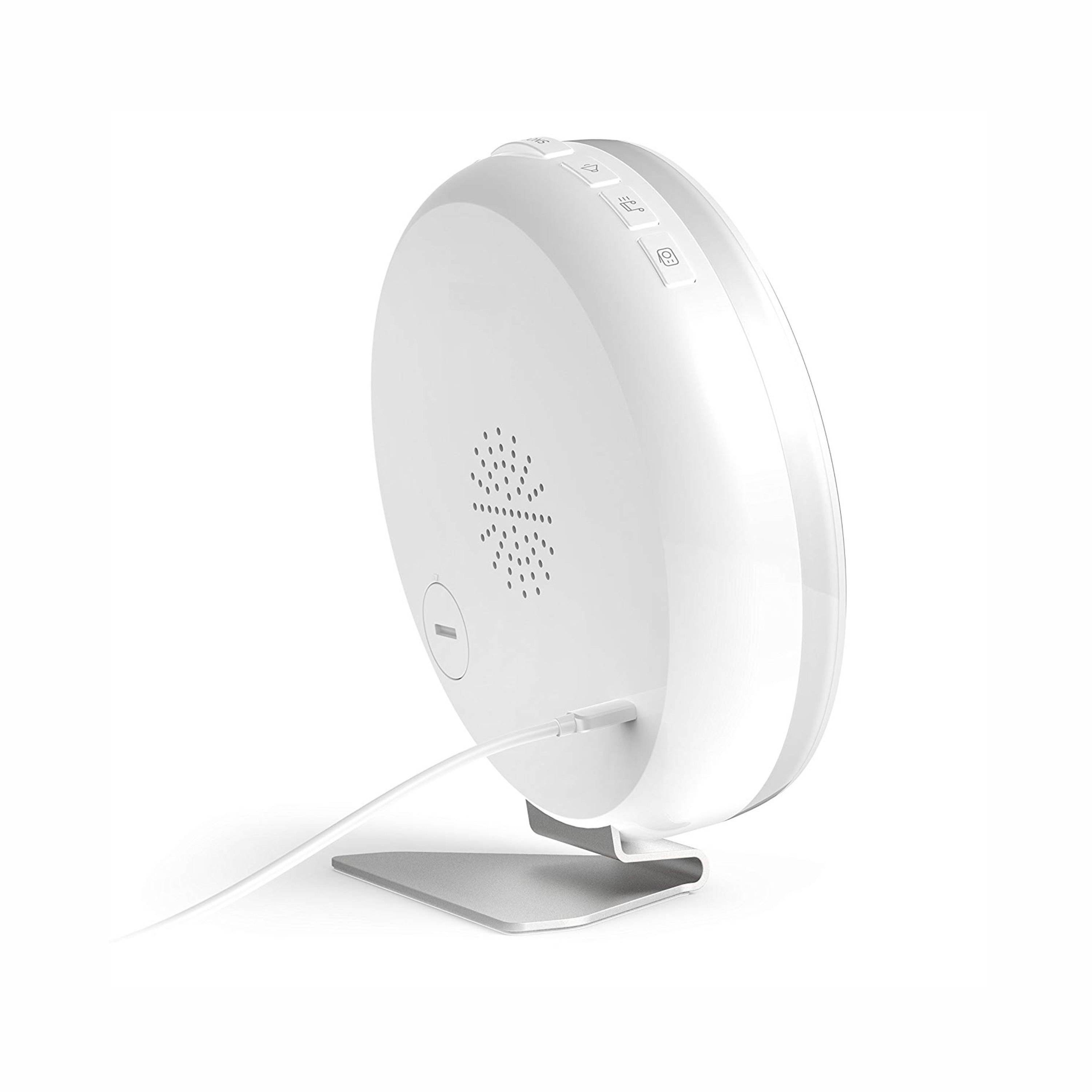 NATURE SOUNDS and FM RADIO - Scroll through soothing nature-inspired sound options like birds, lullaby and ocean waves to wake you up. There’s also a throwback to the FM clock radio - just press radio button on clock top and touch (+) to set station