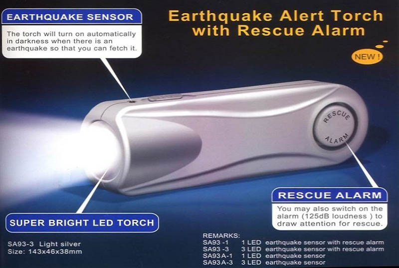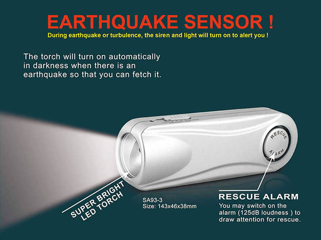 Description: Super bright Earthquake Vibration Sensor LED Torch with Rescue Alarm (125dB+) !