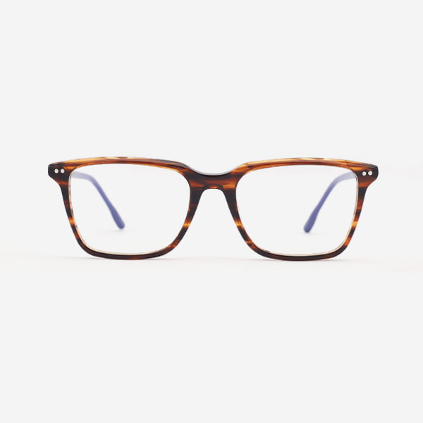 The reqular front shape in super thin, complemented by the bevel cutting construction in acetate, and metal rivets on the endpiece, lots of detail features. This frame combined with flawless quality which is handmaded by 101 optical.