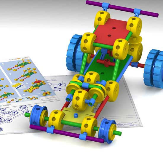 The featured Superstructs building toy set highlights charming characters and safe, durable EVA foam panels that add a brand-new surface for children's imagination. The set provides everything you need to build detailed and hard-working construction vehicles. Build a working forklift, dump truck, crane, or utility truck with the enclosed step-by-step plans. And once you have mastered these, you can take them apart and use your imagination to build other great creations!