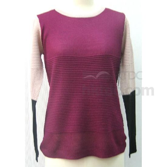 This color block sweater is detailed with roll welt,loose knit sections.