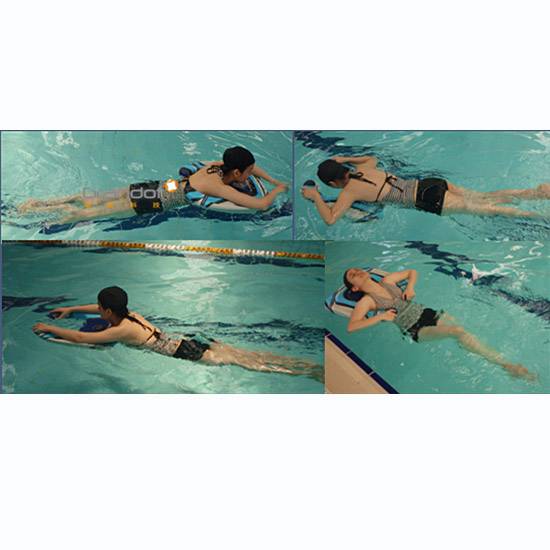 This is a swimming board in a compact design. It is made of quality polyethylene, which will not break easily. This swimming board is ideal for use in the backstroke-style breathing training.