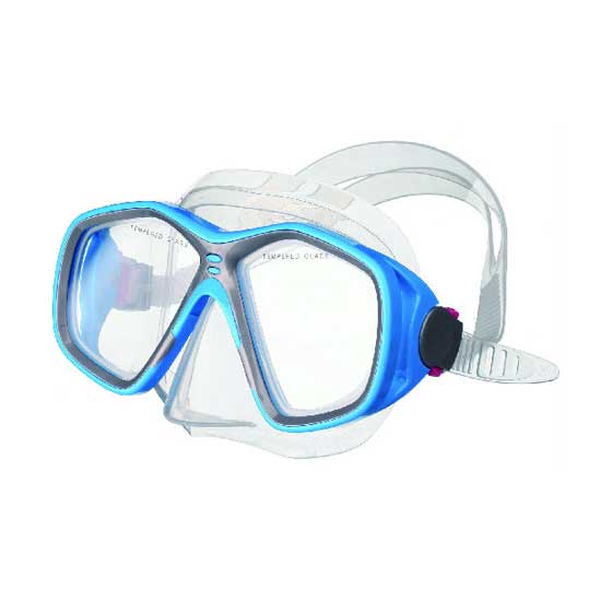 The pictured swimming goggles are attached with an open-window diving mask. The tempered glass construction allows enhanced durability. The adjustable head strap allows comfortable wearing experience.