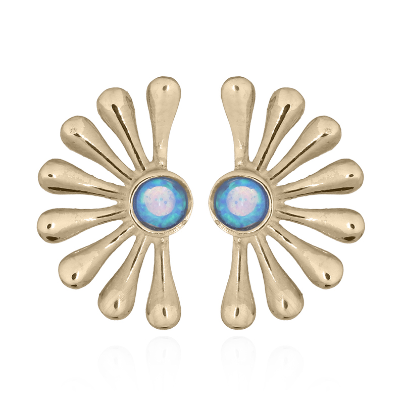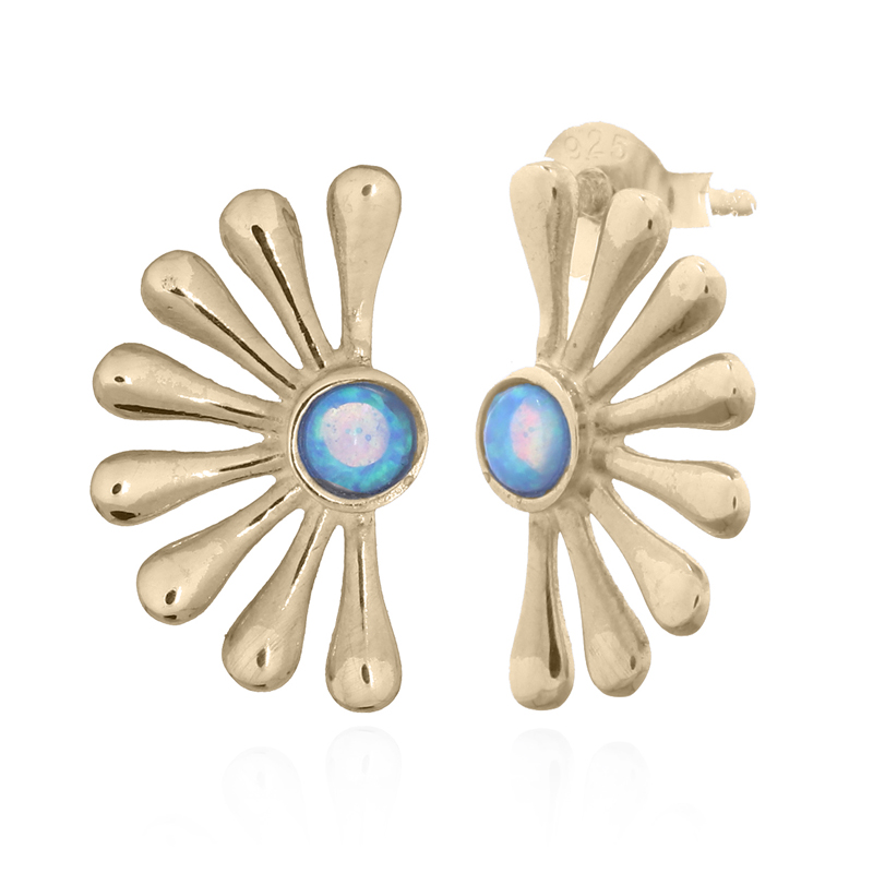 OEM/ODM Synthetic Opal Rounded Sun Ray Gold Plated 925 Silver Earrings from Thailand.