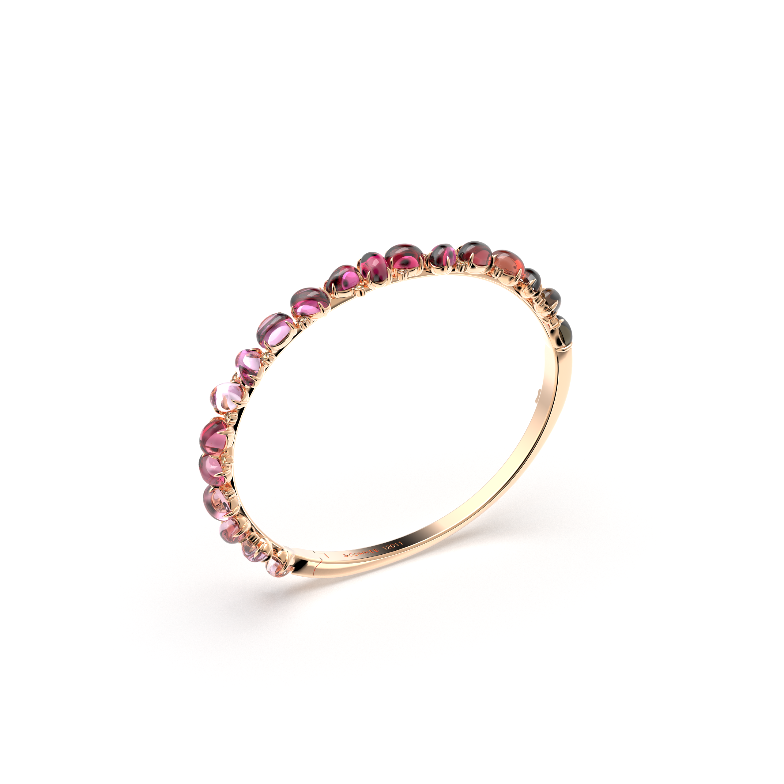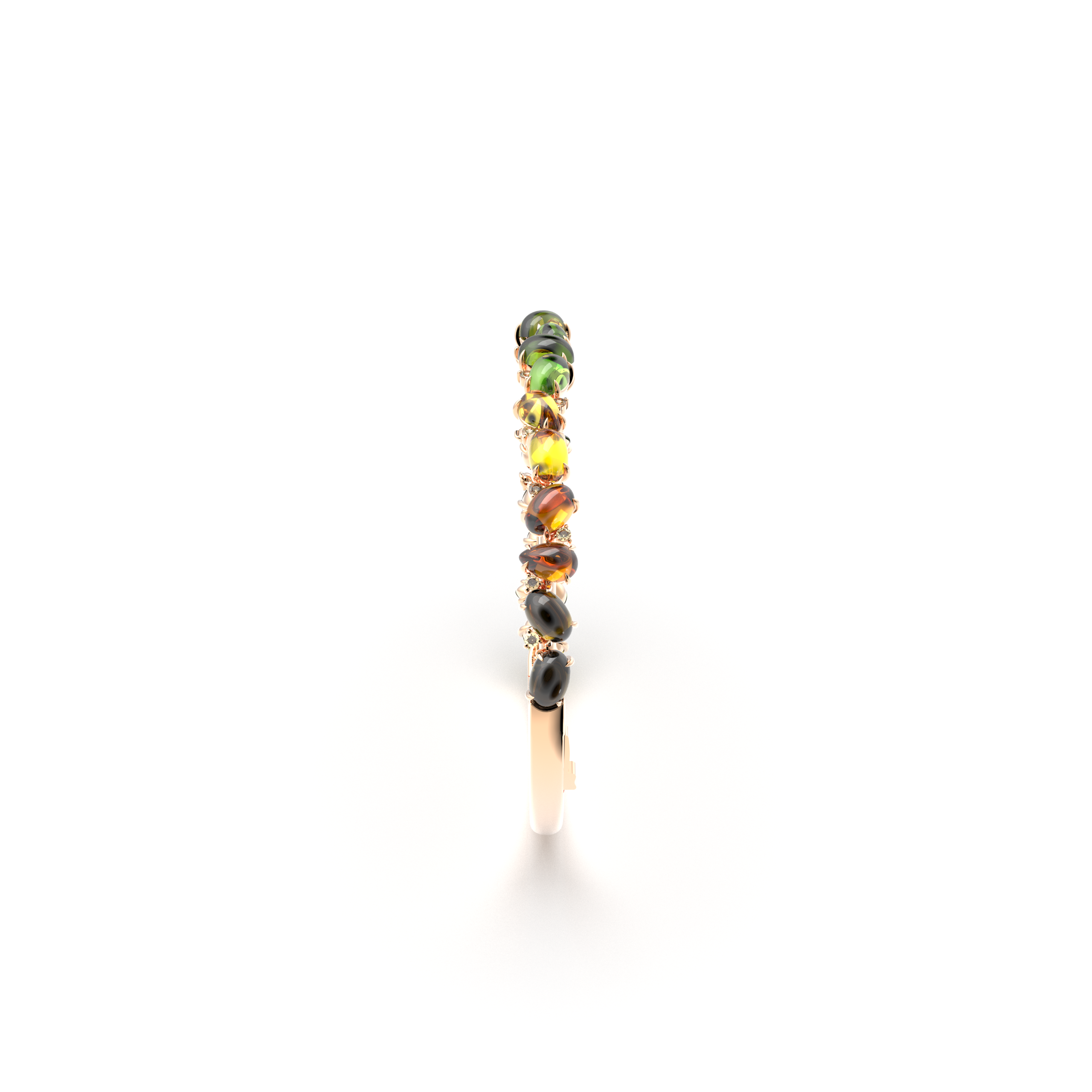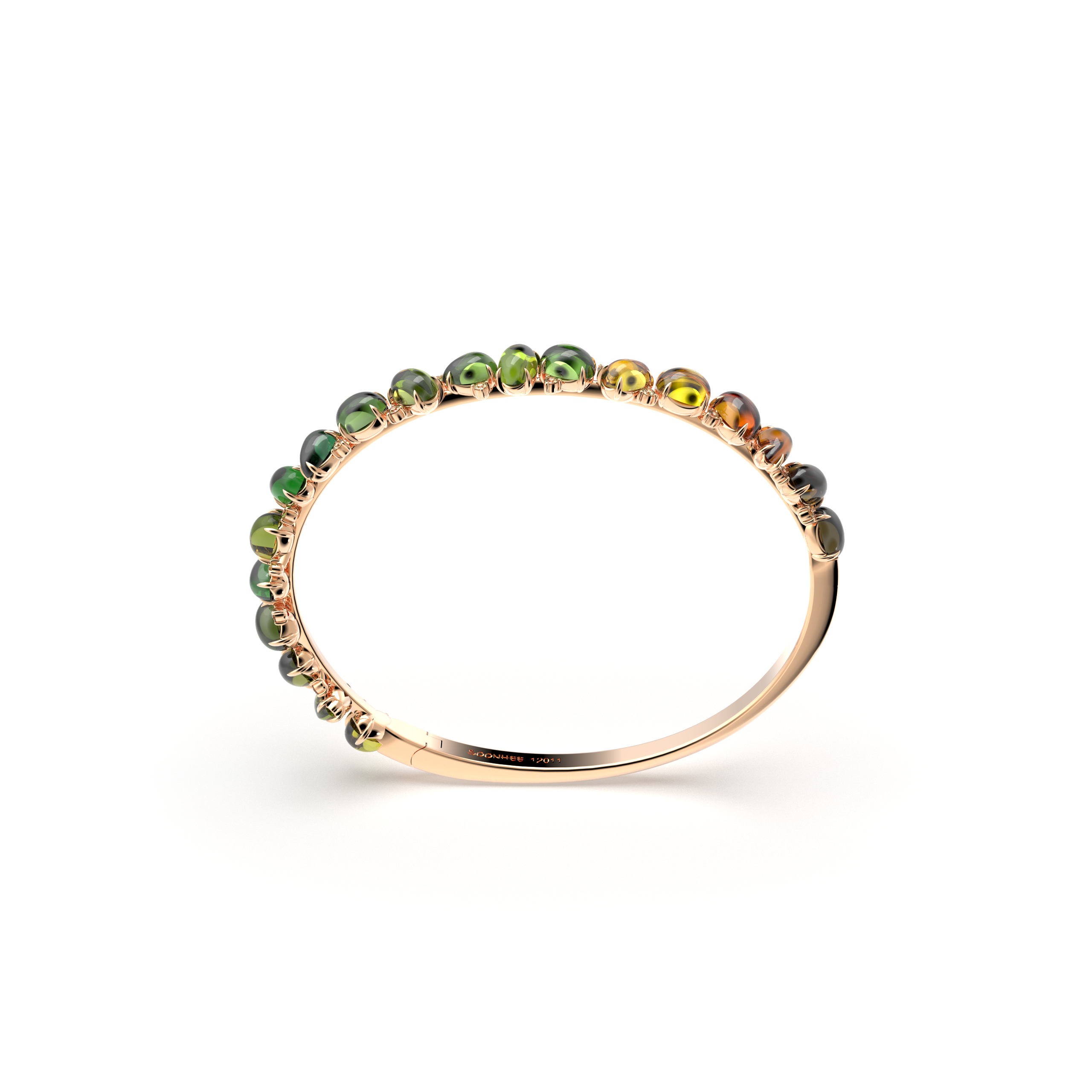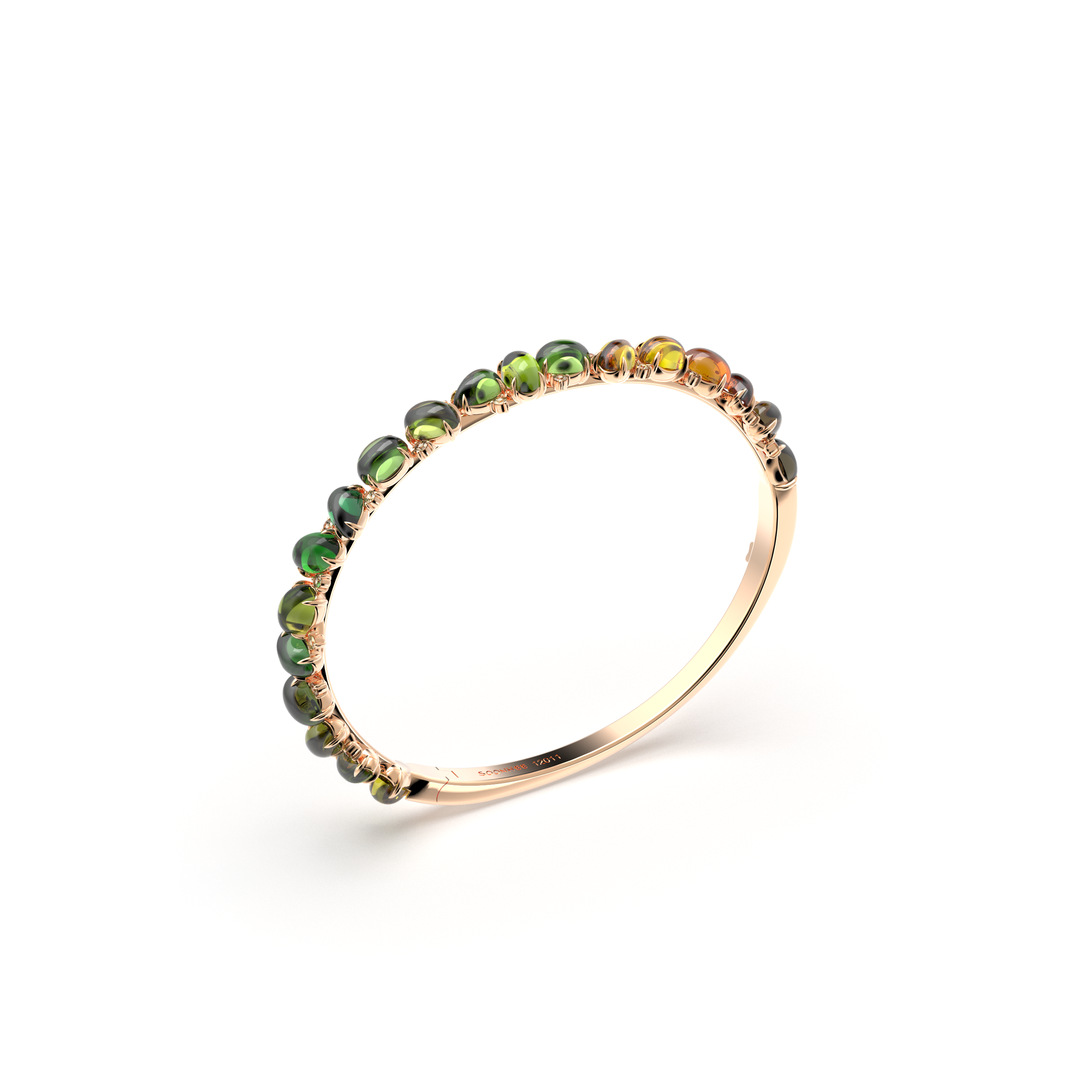 This bracelet is crafted in 18K rose gold and set with fancy diamonds and tourmalines. The tourmalines are available in either a green-tone gradient or a pink-tone gradient, delicately expressing the depth and harmony of natural color. Refined gold detailing enhances the product’s elegant and contemporary appeal.