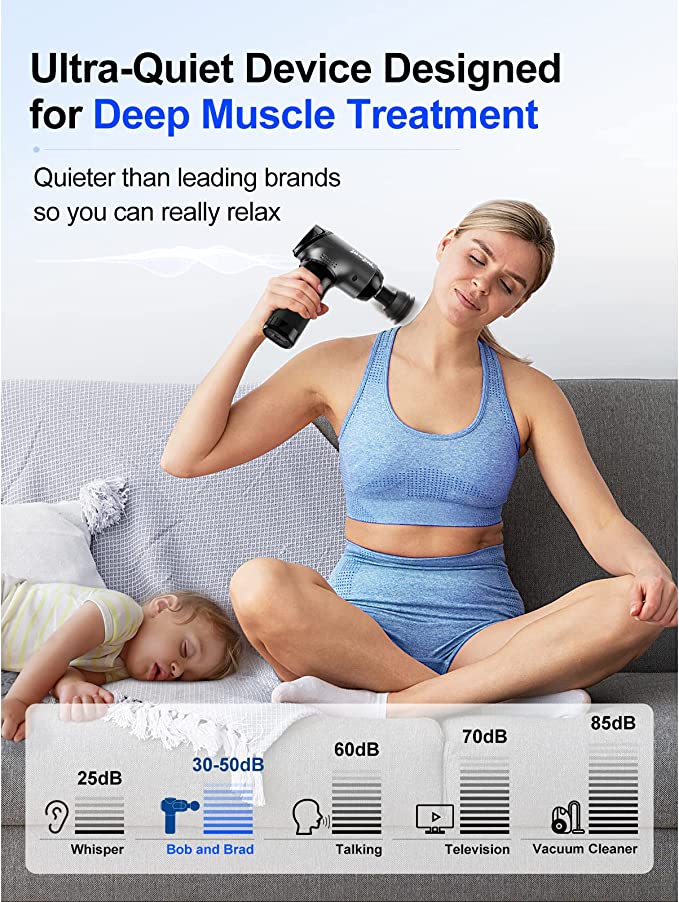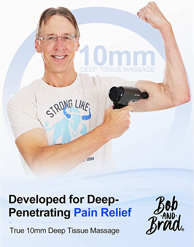 DEEP MUSCLE RELAXATION - The Bob and Brad deep percussion massage gun is powered by a 25W high-torque brushless motor that runs up to 3200 RPM. It reaches and massages deeper in the muscle tissue with its 10mm amplitude, providing you a powerful experience. The massage gun is easy to use and relieves muscle fatigue and pain, boosts blood circulation, and helps with recovery after intense workouts. Ideal for athletes, people who exercise, or people with injuries.