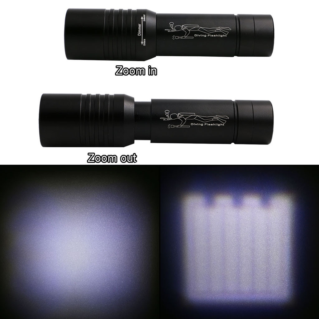 T6 LED Aluminum Alloy Telescopic Focus Diving Flashlight includes the following features :