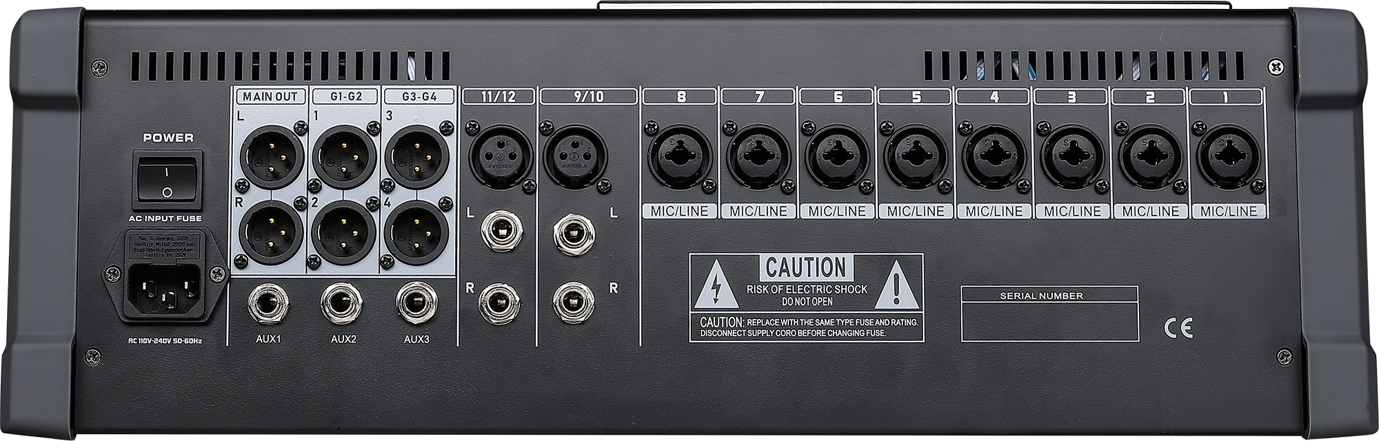 .6 /8/12/16/20/28 MONO ¼” and XLR inputs, 2 stereo inputs.