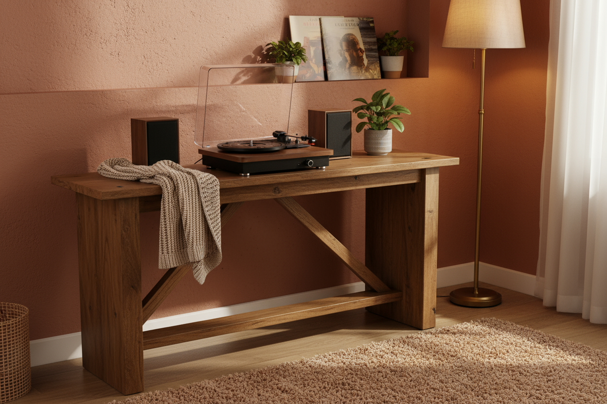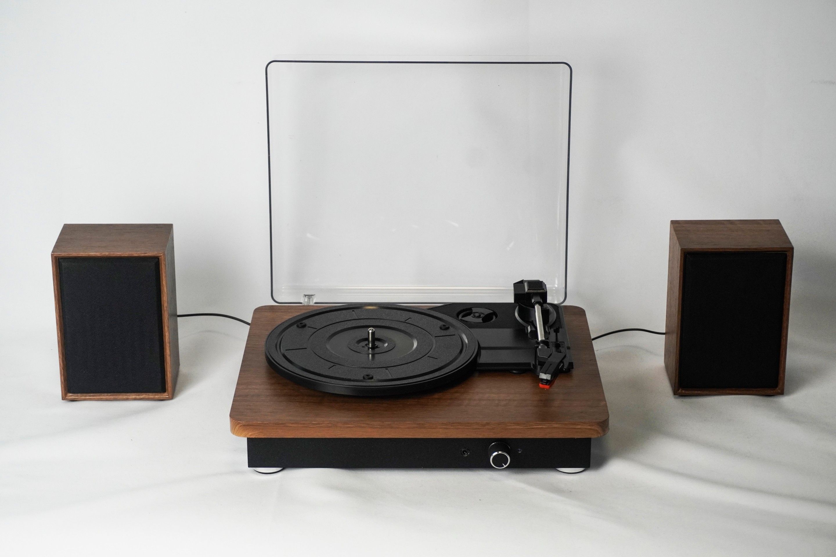 TR112 is a slim, design-forward turntable with dual 5W wooden satellite speakers that delivers a wider stereo soundstage and plug-and-play simplicity, with optional FM and OEM-ready packaging for lifestyle retail and gifting.