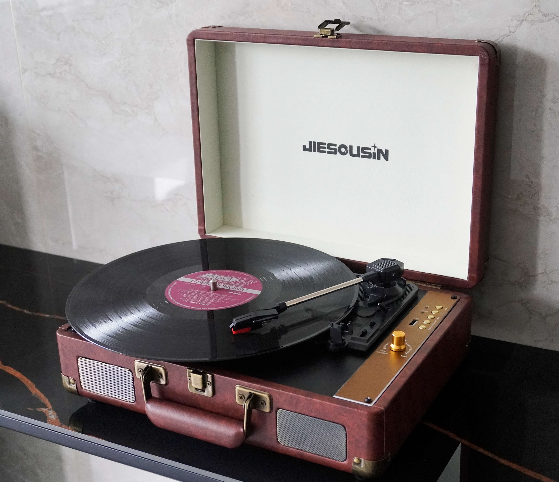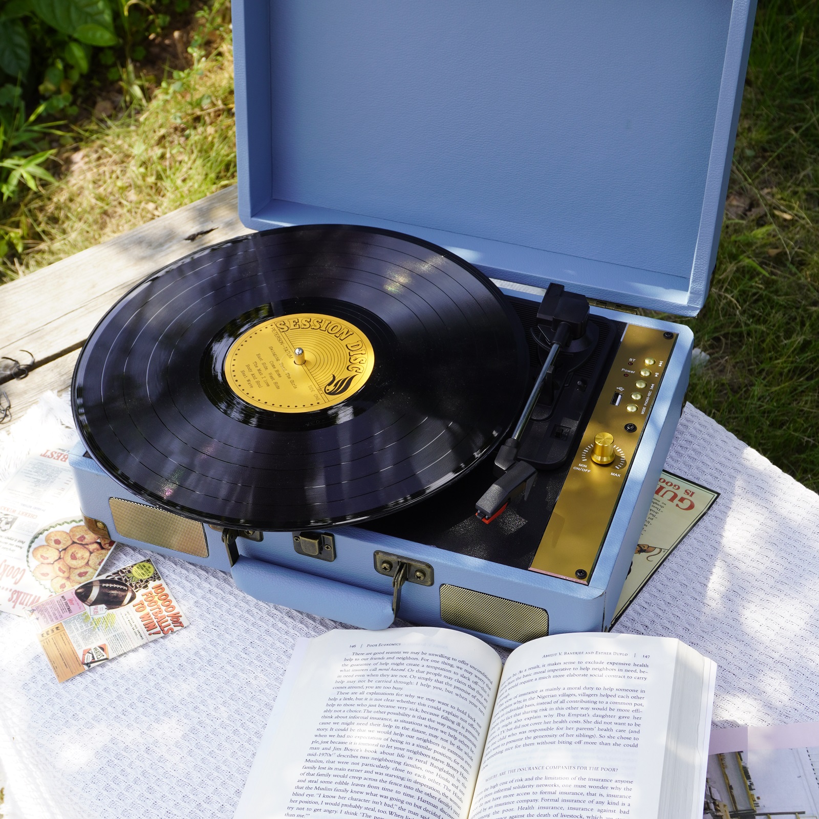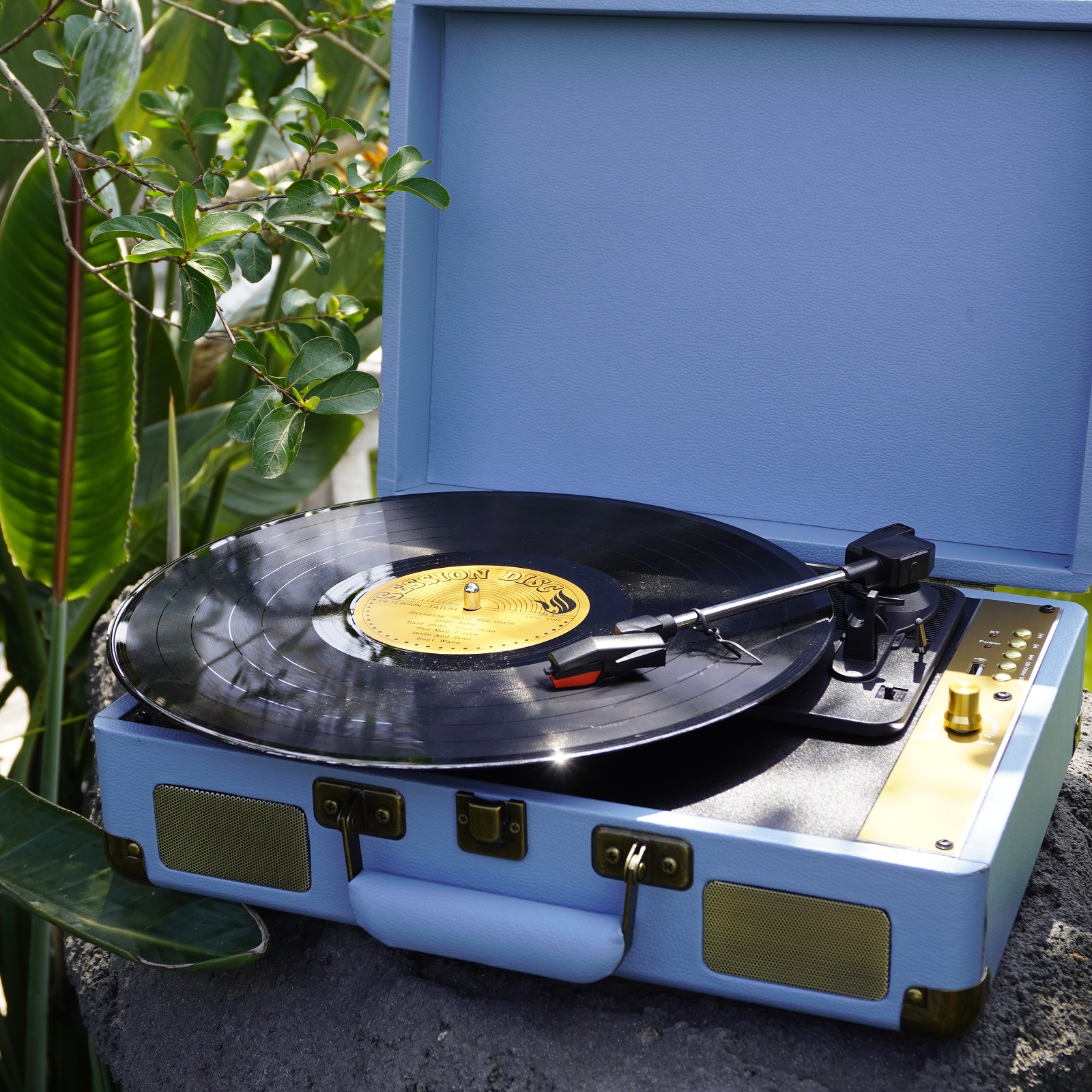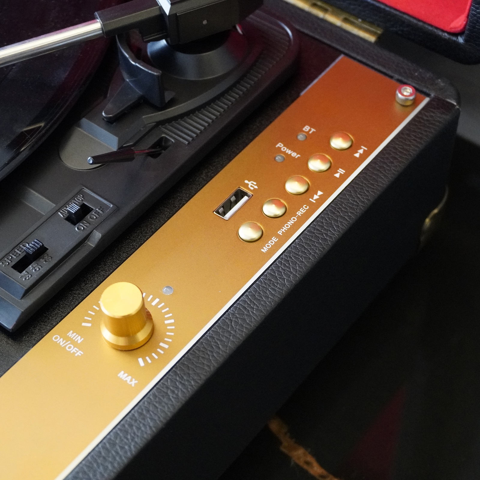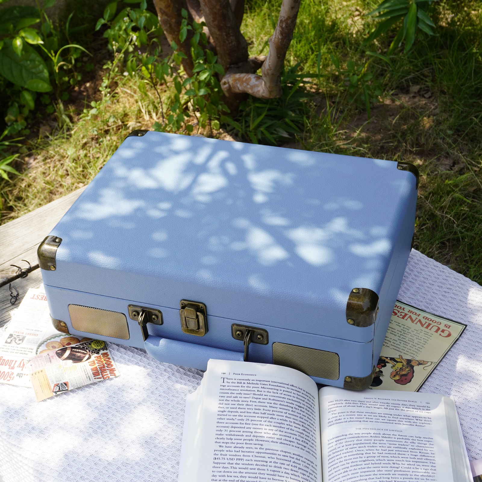 - A suitcase turntable that looks premium, sounds fuller, records to USB, and plays anywhere for up to 4 hours.