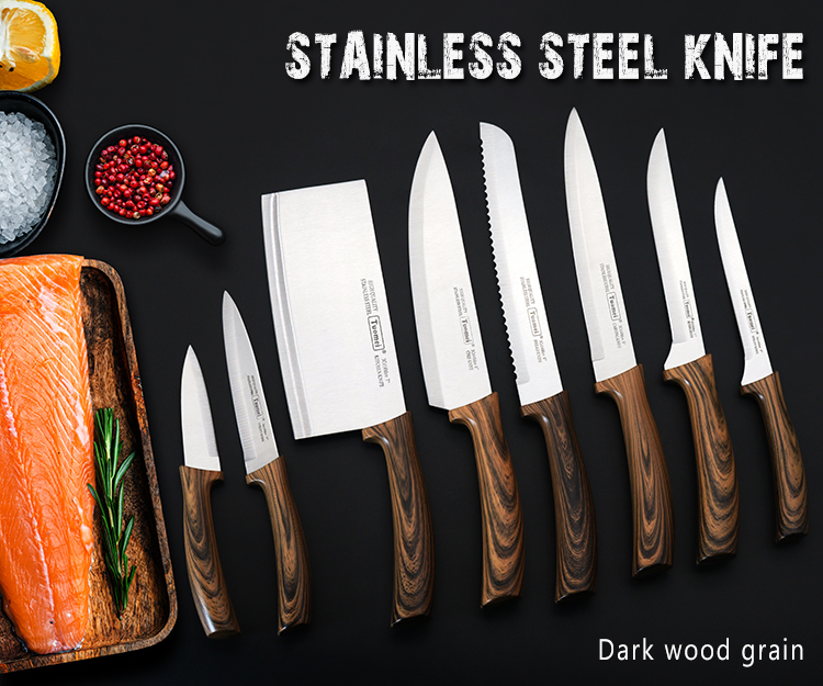 TUOMEI Wooden Pattern Plastic Handle Kitchen Knife Single Selling Item for Home Use Chef Knife
