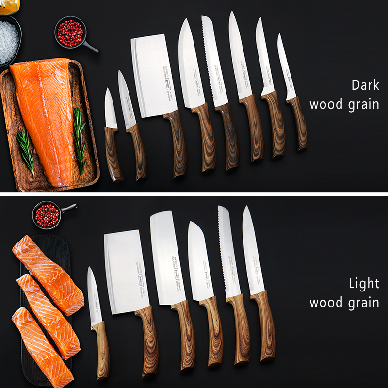 TUOMEI Wooden Pattern Plastic Handle Kitchen Knife