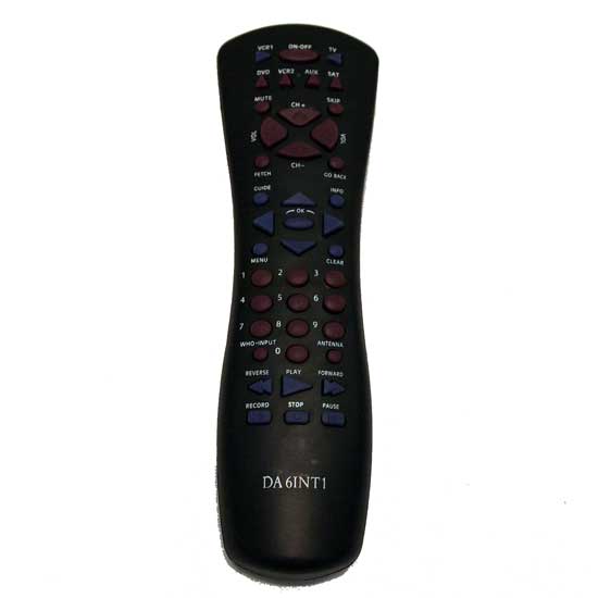 The featured TV remote control unit touts a cool black finish with dark red and blue buttons. The fashionable design offers modern elegance. This TV remote control unit makes a versatile addition to your home theatre.