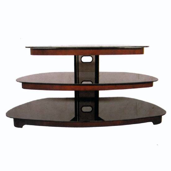 Featured is a sophisticated TV stand with 3 tiers. The square steel tube support frames with a black coating guarantees a sturdy construction. This modern TV stand makes an elegant and classy addition to display your wide-screen TV and audio components.