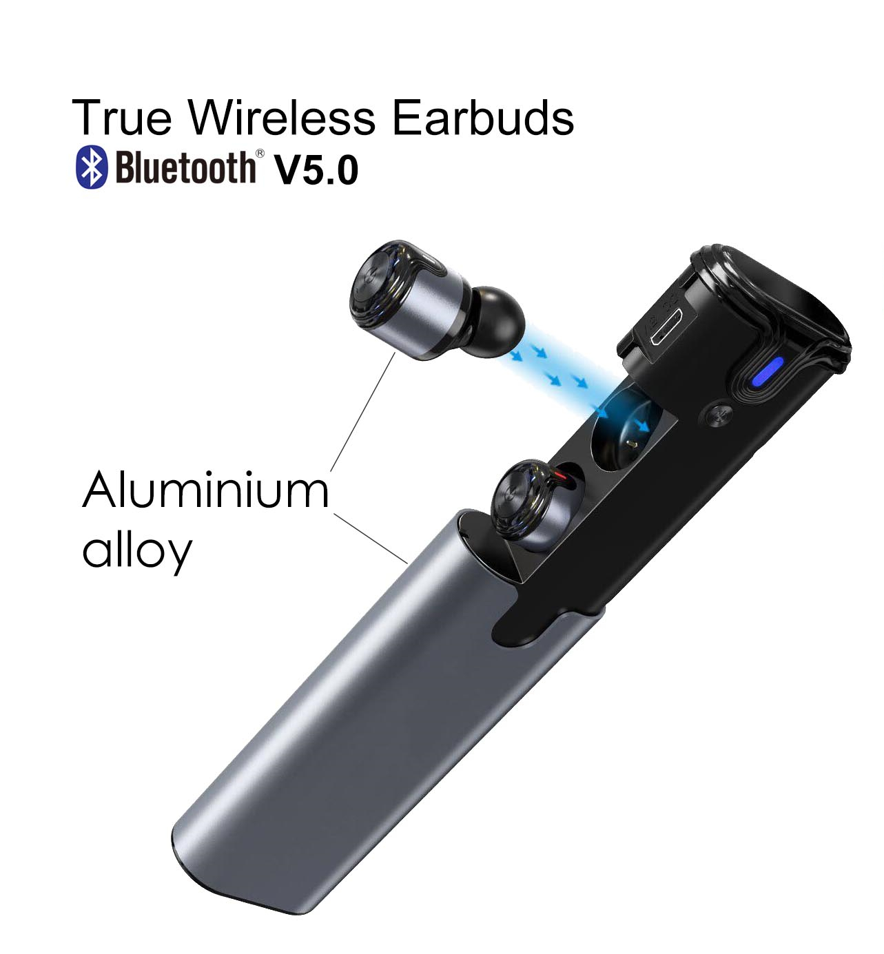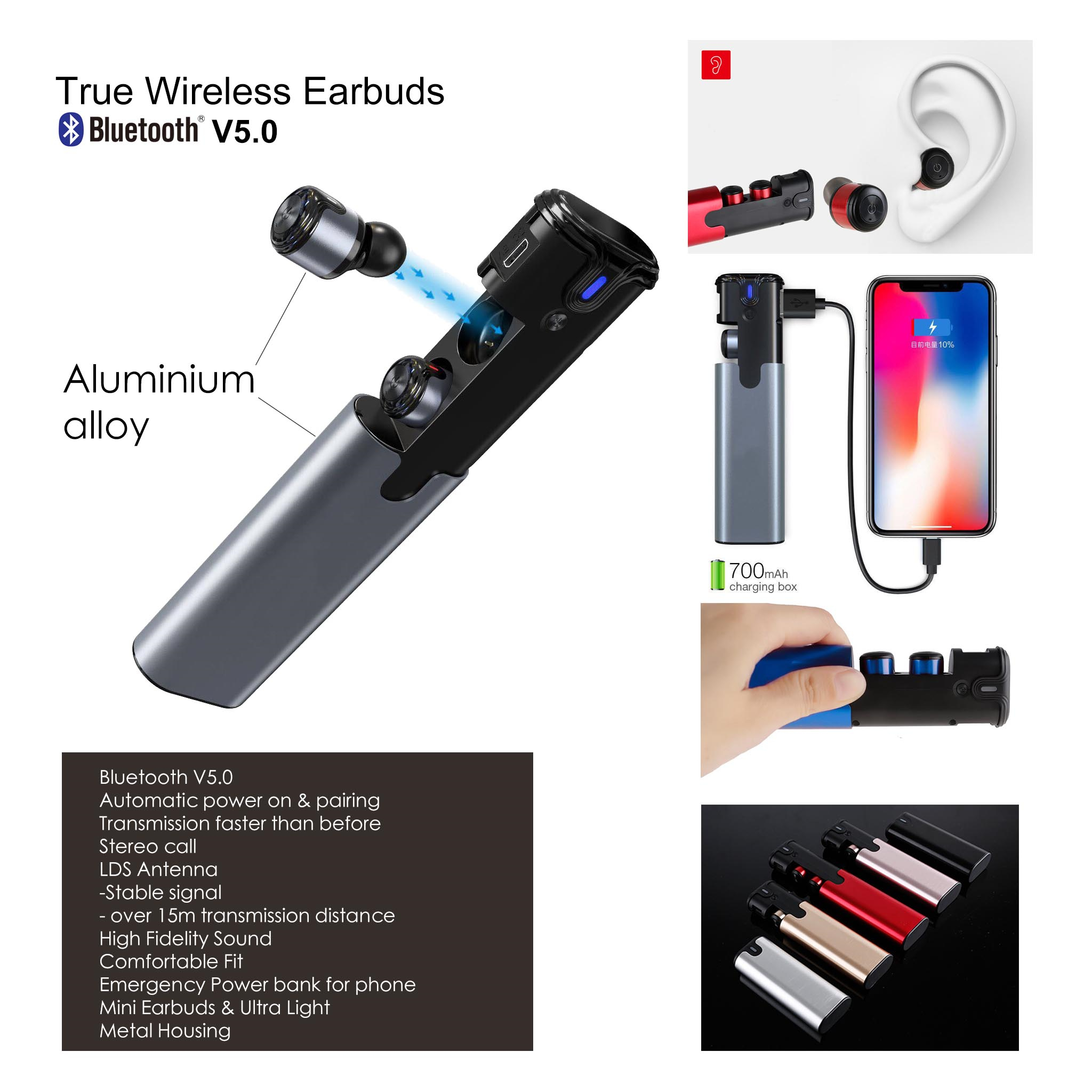 - Metal housing(charging case & earbuds)