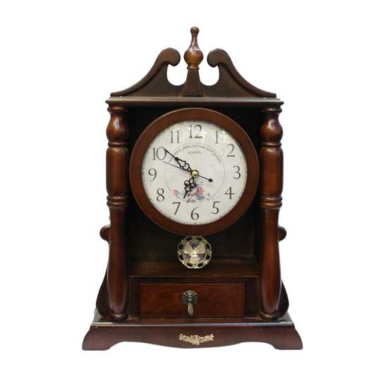 This is an elegant table clock that will add a glamorous touch to any home decoration. It has a bottom drawer that allows you to place different item inside it. The wooden frame in brown offers an extra-long service life.