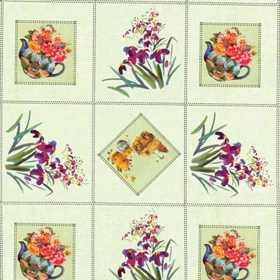 This is a dainty table cloth in beige. It is divided into 9 grids accented with refined floral patterns. It will surely complement your dining table nicely.