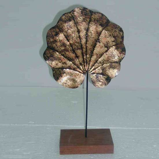 This unique table decoration features the design of a round-shaped golden leaf. The decoration showcases excellent craftsmanship with refined details. The square base completes the look of this stylish table decoration.