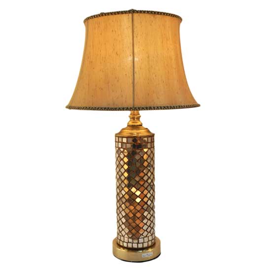 The table lamp has a glass body fixture. The round fabric lampshade helps give out even illumination to the room. This exquisite table lamp makes an excellent decorative item for your room.