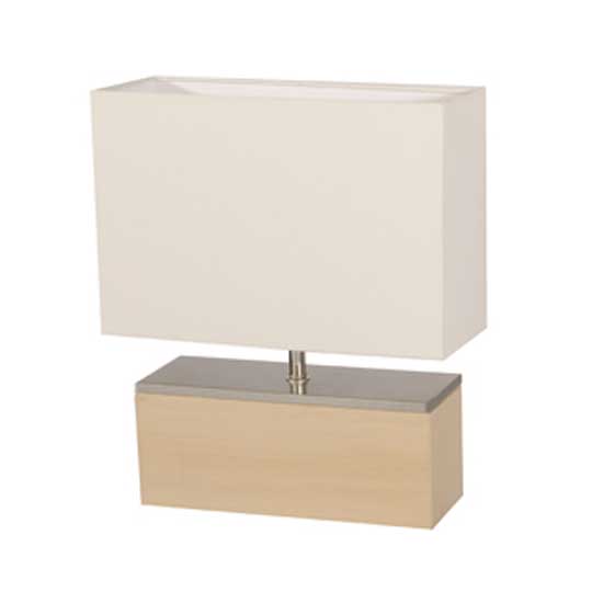 The table lamp features a rectangular cotton shade with a matching wooden stand for a contemporary look. It boasts mild brightness to create a harmonious atmosphere. Update your home decor with this table lamp.