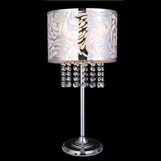 This is a table lamp that grabs people's attention with its stunning and deluxe appearance. Its lampshade is designed in a tube shape with dainty and exquisite patterns on the exterior. The dangling laser-cut crystal elements accent this lamp in a charming and unique way.