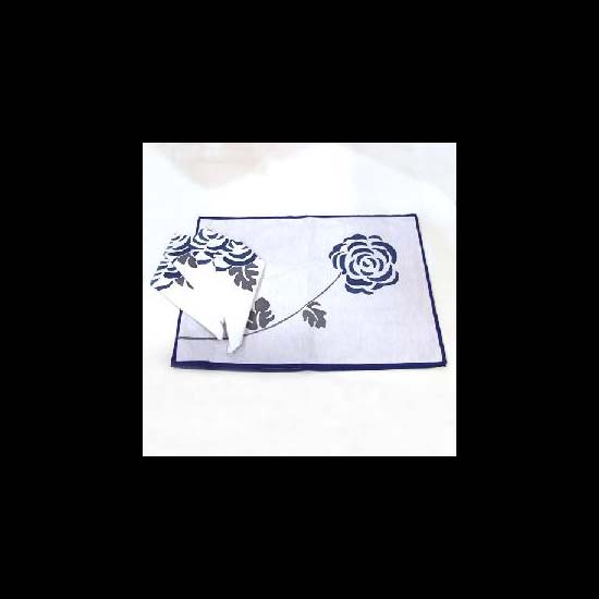 When folded in a specific way, the blue rose forms another pattern for the folded table cloth