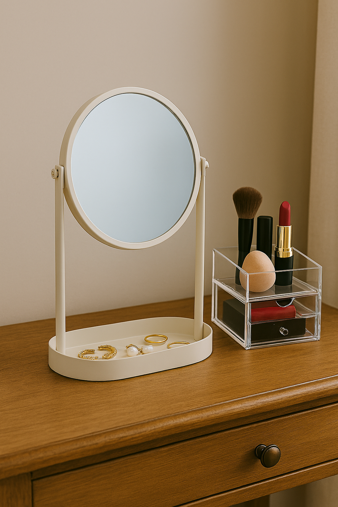 ROUND TABLE MIRROR(1X/2X) W/BAMBOO TRAY & METAL FRAME