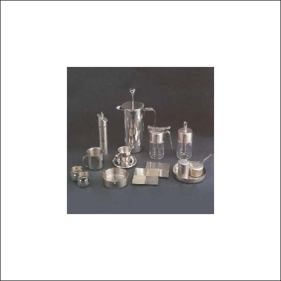 The tableware set comes with coffee maker, cup, sauce bottle and tray, candle holder, ashtray