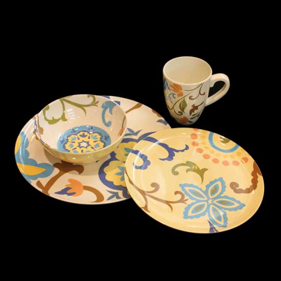 The tableware set comes with two plates, one bowl and one cup. The tableware set is finely crafted of beautiful floral patterns for extra beauty. The elegant design makes this tableware set an ideal addition to any table.