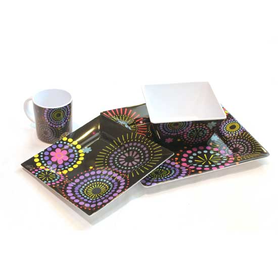 The tableware set is finely made of 100% melamine. The tableware set consists of two plates, one square-shaped bowl and two plates. The eye-catching floral patterns add a great touch of beauty.