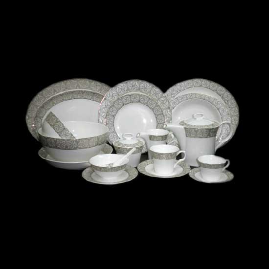 This tableware set includes teapots, cups, bowls and plates. This tableware set is finely crafted of fine bone china. This elegant tableware set is an ideal addition to your dining table.