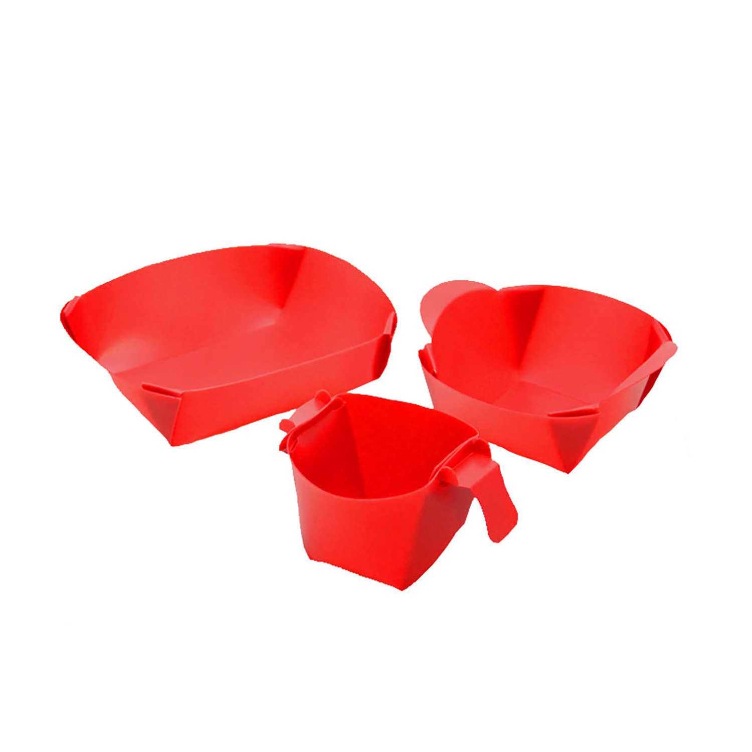 Foldable cup - 350ml (21 x 21cm); Foldable bowl - 650ml (22 x 27cm); Foldable plate - 1,050ml (22 x 27cm); Thickness of 0.8mm
