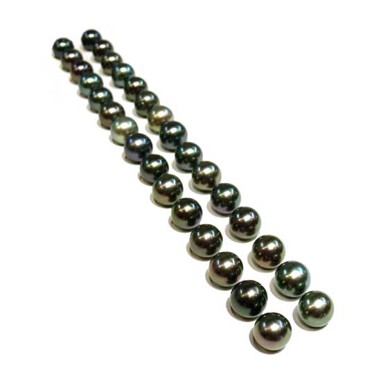 These are two rows of Tahitian pearls with natural glitter. Each piece is opaque in colors of silver-black. These charming pearls are ideal for making different kinds of jewelry like necklaces, bracelets, earrings and so on.