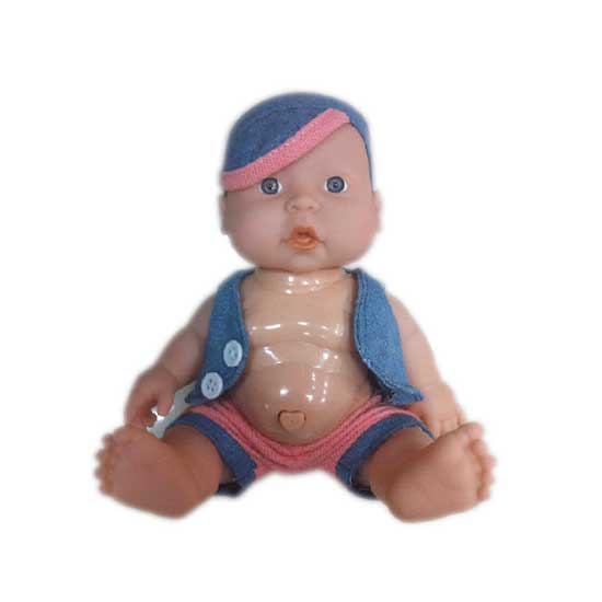 This lovely baby doll will talk to you when pressing the button at his belly. It wears a denim-like hat, a denim-like vest and a pair of short pants for a cute look. This funny talking baby doll is an ideal choice for accompanying your kids when he/she is alone.